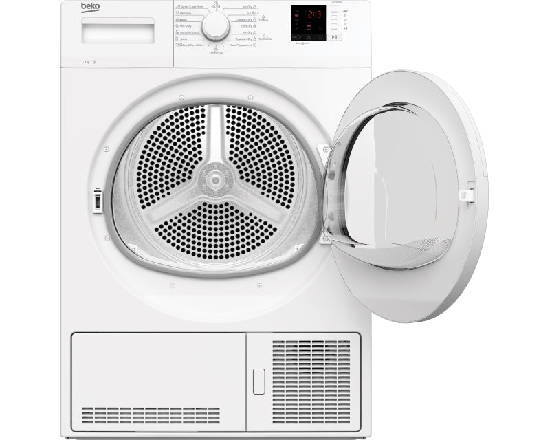 Karakteristike - Tip: Mašina za sušenje veša Tip mašine: Kondezaciona Kapacitet sušenja: 7kg Energetska klasa: B (po prethodnoj klasifikaciji) Broj programa: 15 Način punjenja: Frontalno Fizičke karakteristike - Boja: Bela Visina: 84.6cm Širina: 59.7cm Dubina: 56.8cm Težina: 33.5kg Nivo buke: 65dB(A) Stanje: Nekorišćeno Programi za sušenje veša - Programi: Eko program za pamuk,Ekspres super kratak program 14 min,GentleCare program,Program higijena+,Program za ekstra sušenje pamuka,Program za farmerke,Program za košulje,Program za lako peglanje sintetike,Program za mešoviti veš,Program za odeću za sport i rekreaciju,Program za sintetiku,Program za sušenje pamuka za garderober,Program za sušenje pamuka za peglanje,Program za vunu Ostalo - Dodatne funkcije: Dečija sigurnosna zaštita,Digitalni displej,Drum Light,Indikator za čišćenje filtera,Indikator za čišćenje kondenzatora,Odložen start,Sušenje sa podešenim tajmerom,Zvučni signal Podržane tehnologije: AquaWave technology Ostalo: Crevo za direktan odvod Reklamacioni period - Napomena: Pravo na ukupnu garanciju od 5 godina (2+3) na Beko ostvaruje se isključivo registracijom na sajtu: https://register.beko.com/rs-sr Reklamacioni period: 24 meseca